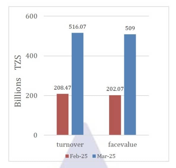 February, while turnover rose sharply to TZS 516.07 billion, compared to TZS 208.47 billion. This reflects an